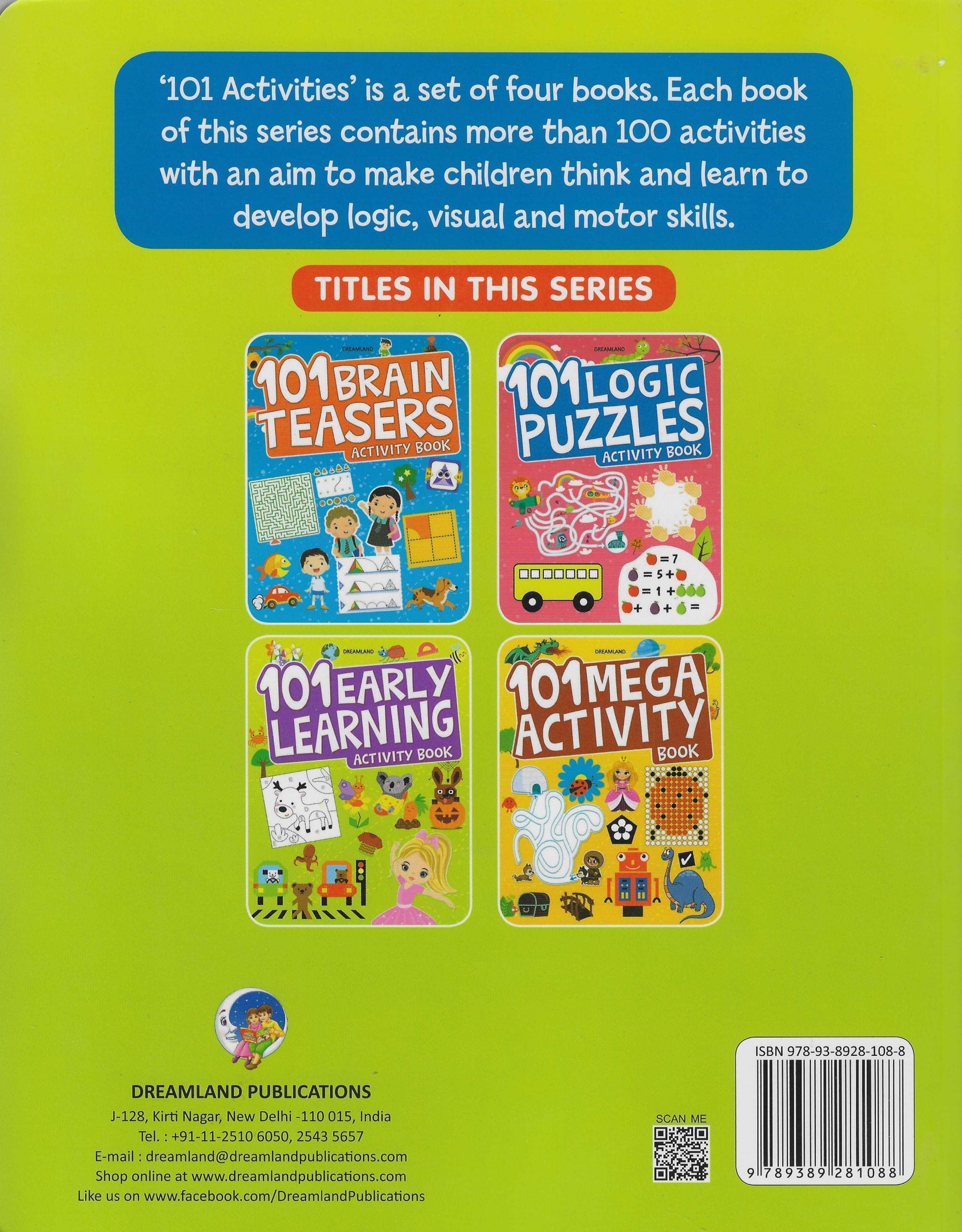 ?101 activities? A set of four books. Each book of this series contains more than 100 activities with an aim to make children think and Lean to develop logic, visual and motor skills.
