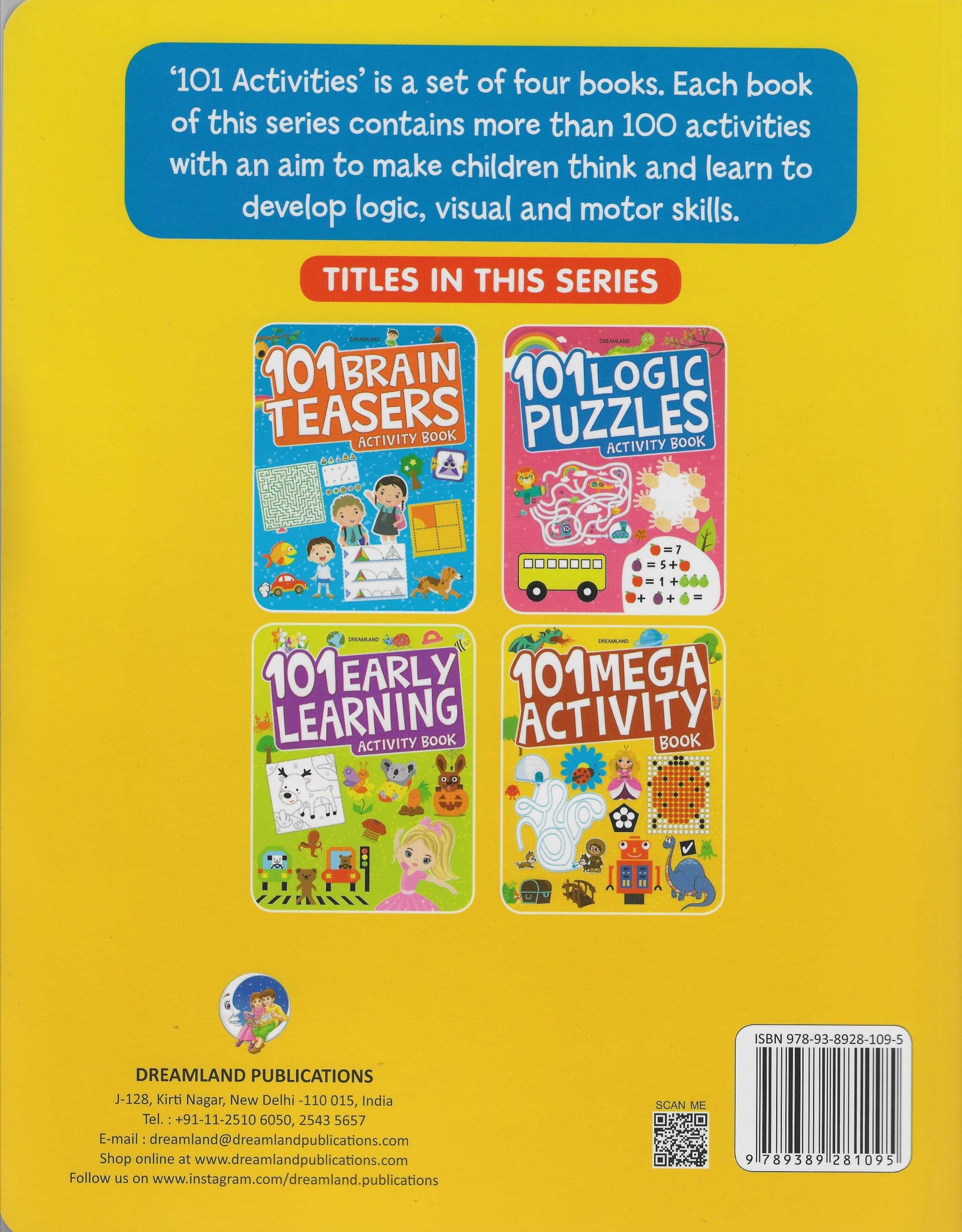 ?101 activities? A set of four books. Each book of this series contains more than 100 activities with an aim to make children think and Lean to develop logic, visual and motor skills.