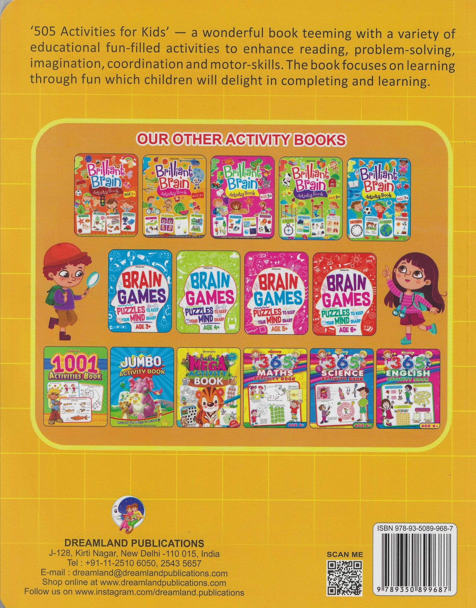 ?505 Activities for Kids? ? a wonderful book teeming with a variety of educational fun-filled activities to enhance reading, problem-solving, imagination, coordination and motor-skills. The book focuses on learning through fun which children will delight in completing and learning.