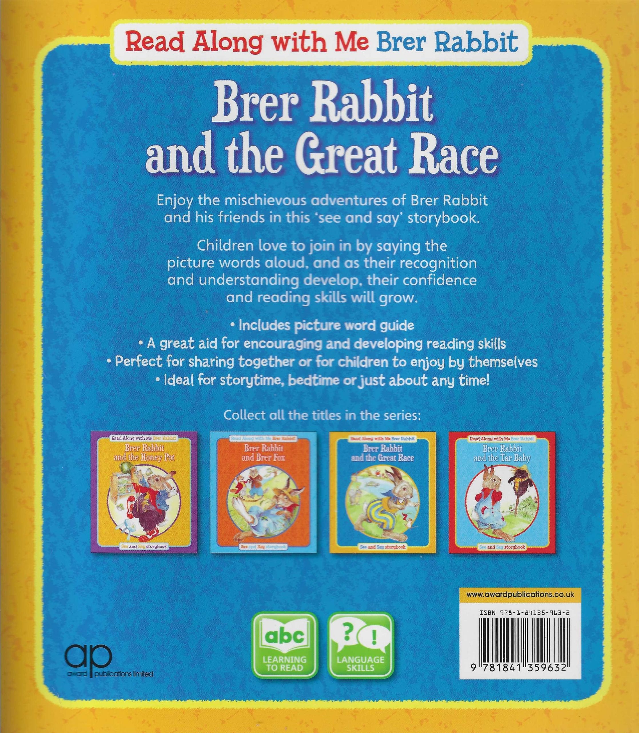 Brer Rabbit is a naughty little fellow. He likes to play tricks on Brer Fox, Brer Wolf and the other animals who are always trying to catch him. Follow his misadventures and develop your child’s reading skills with this delightful picture storybook series. Retold in the popular ‘see and say’ rebus format, each includes a picture word guide inside the back cover and a full-page, colour illustration on every spread.