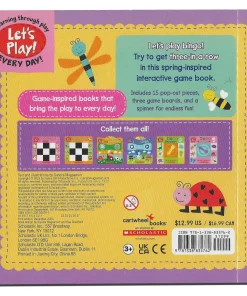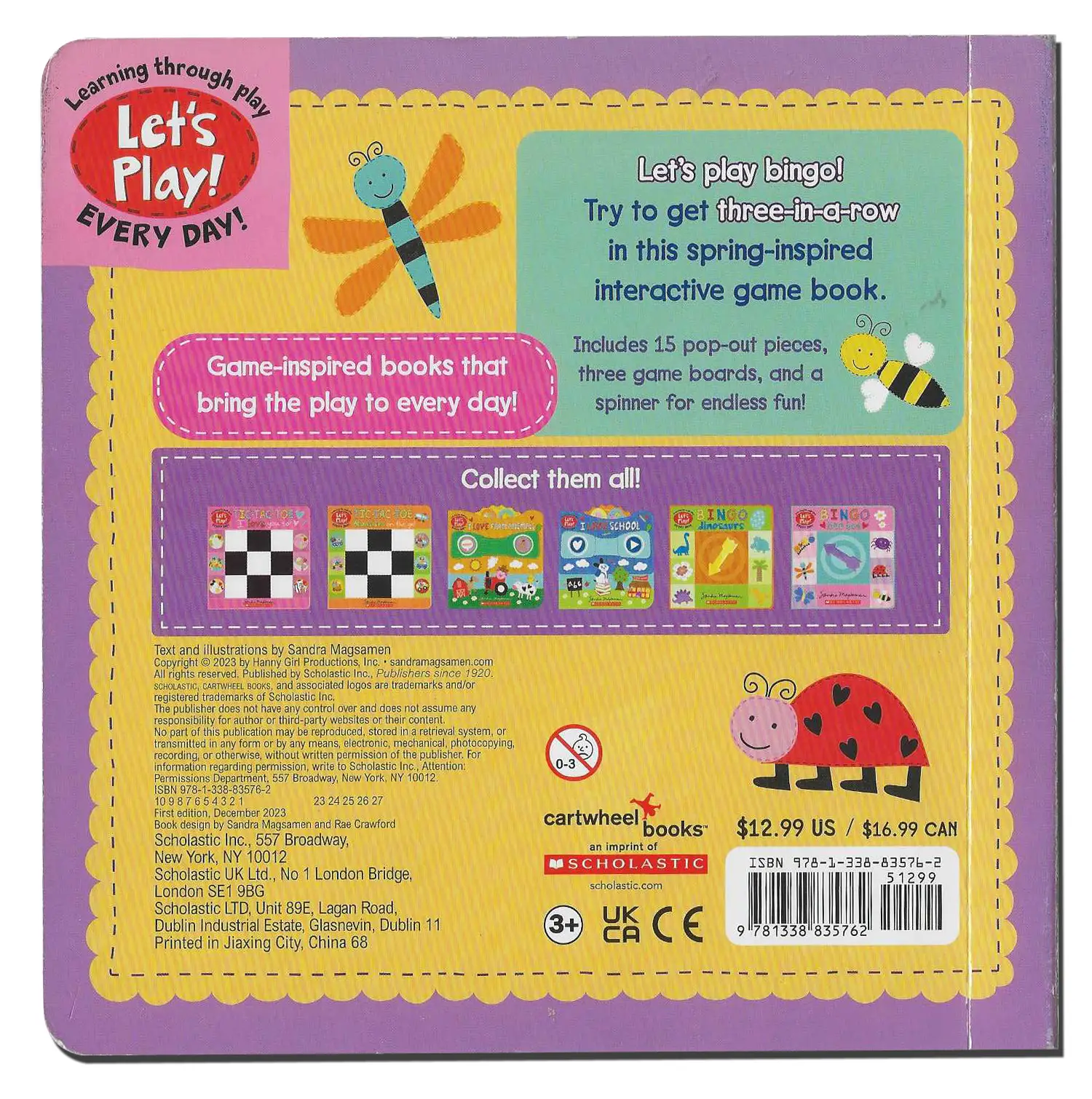 Inspired by the traditional bingo game but customized to the youngest reader, this game book features garden love and favorite backyard bugs! The first page flips up to reveal an interactive spinner and contains 15 reusable punch-out pieces. Each spread features a new playing card, perfect for on-the-go game time fun and suitable for one to four players!