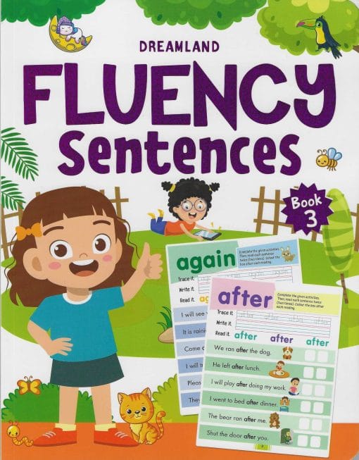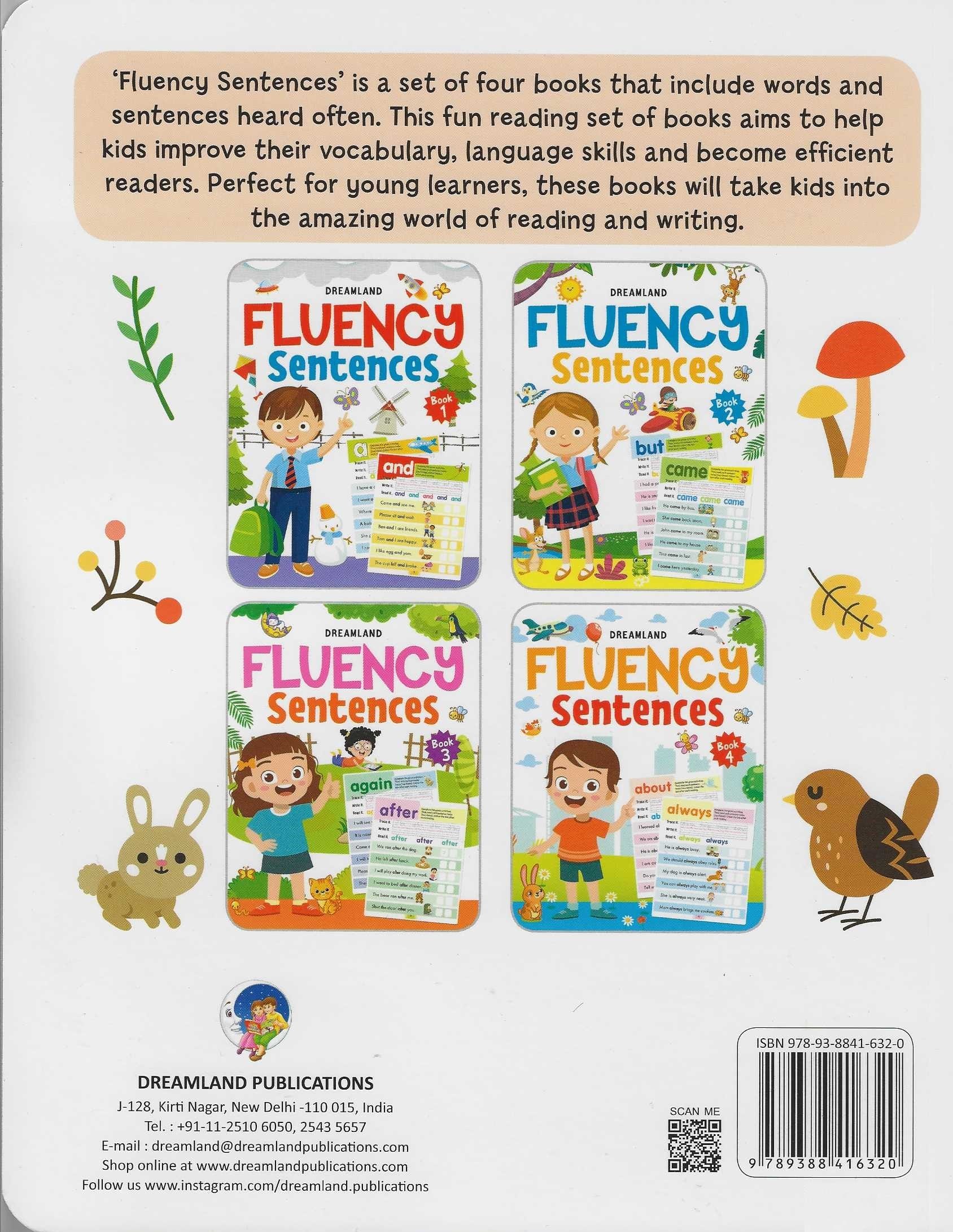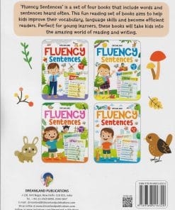 Fluency words are those necessary words that are commonly used in the English language. ?Fluency Sentences? is a book aiming to teach kids to learn to read, write and then put the fluently used words into simple sentences. This book will serve as a great reading foundation for children. ? Ideal for ages 4-7 years ? Pages 64 ? Colourful presentation ? Educative and entertaining ? Building block for reading success ? Lots of engaging activities ? Strong foundation for literacy ? Cute cover design This educative and entertaining book will help kids improve their vocabulary, language skills and become efficient readers. It will make kids trace, write, and read each word, then use it in a sentence to help them enhance their language skills. It will help children strengthen their spelling skills while developing their recognising common words skills by accurately using them in sentences.