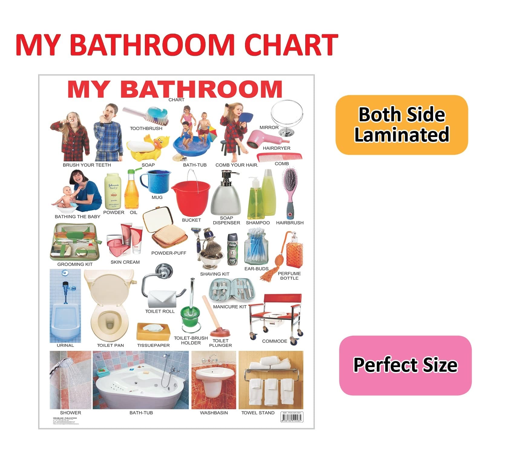 Beautifully designed My Bathroom Educational Wall Chart has colorful pictures of a variety of things that we see in our bathroom with their names written underneath.