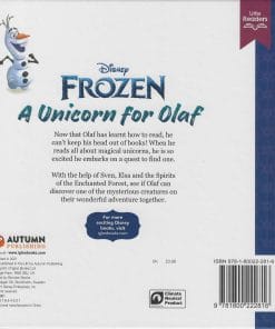 Now that olaf has learnt how to read,he can’t keep his head out of books! When he reads all about magical unicorns,he is so excited he exbarks on a quest to find one. With the help of sven, Elsa and the spirits of the enchanted forest,see if olaf can discover one of the mysterious creatures on their wonderful adventure together.