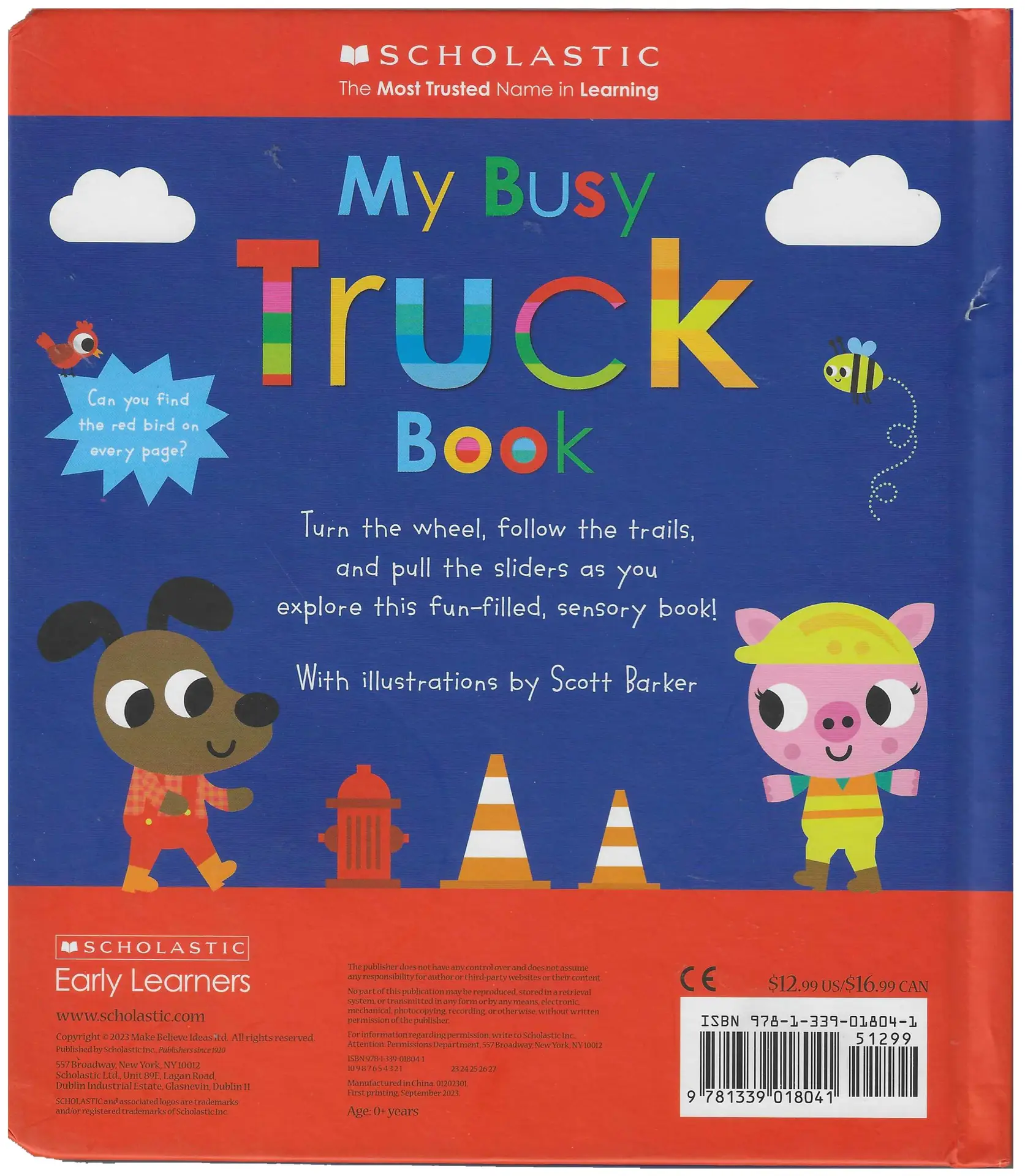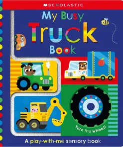An interactive truck book featuring sensory touches, a real spinning wheel, and finger trails to help develop fine motor and early literacy skills. Perfect for the busy hands and busy brains of toddlers!