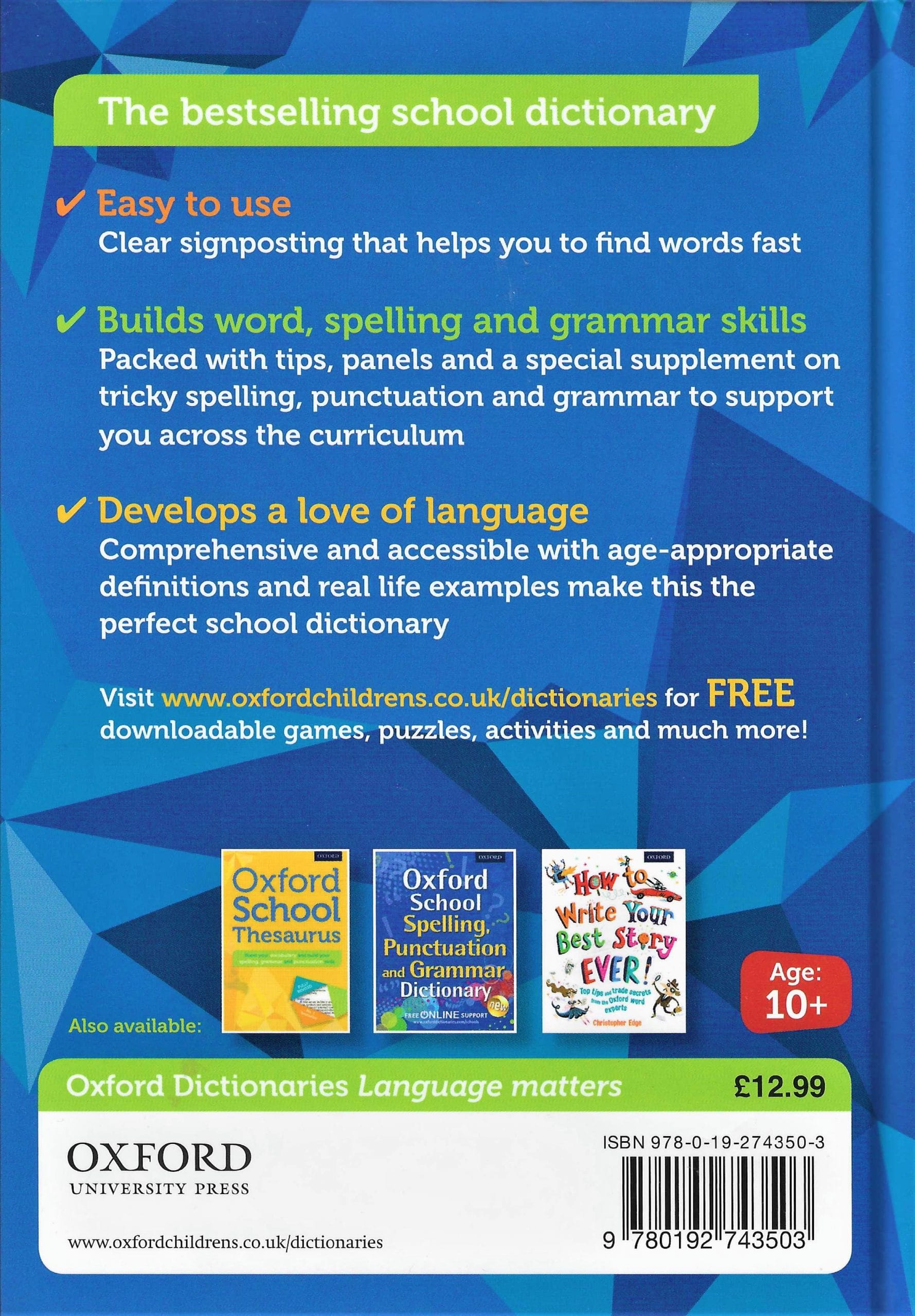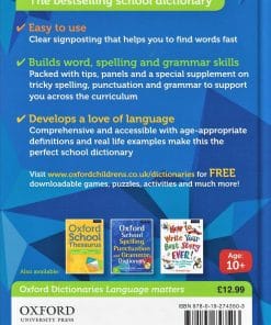 This new edition of the bestselling Oxford School Dictionary (hardback) has contemporary, comprehensive vocabulary coverage, example sentences, and fascinating word origins. The dictionary supports students with their language and spelling skills, and helps with the transition from primary to secondary.