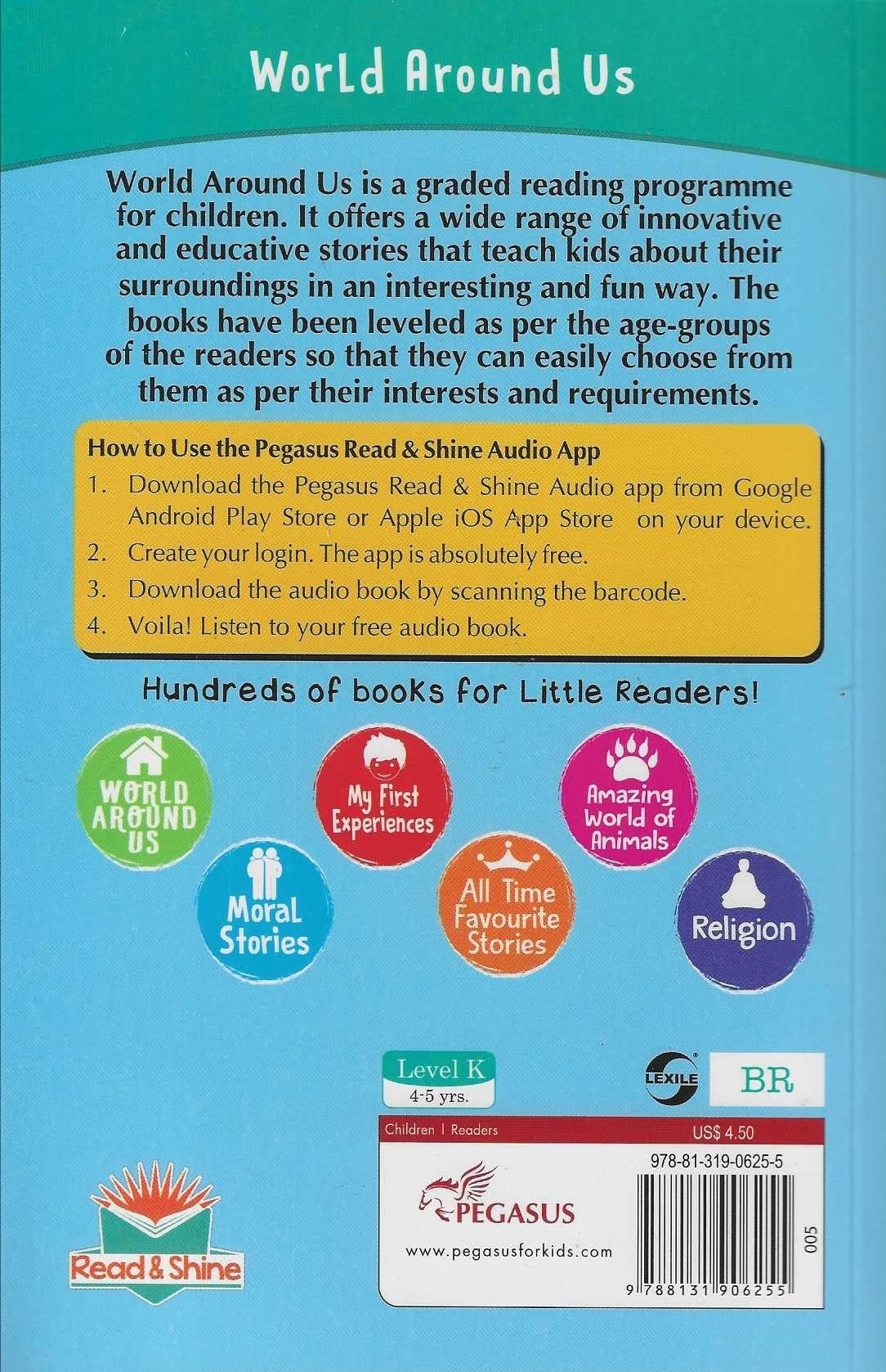 World Around Us is a graded reading programme for children. It offers a wide range of innovative and educative stories that teach kids about their surroundings in an interesting and fun way. The books have been leveled as per the age-groups of the readers so they can easily choose from them as per their interests and requirements. Suitable for ages 4 to 5 years, this title features a series of original stories written in a simple way, graded in four levels for children who are learning to read.