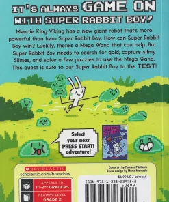 Pick a book. Grow a Reader!This series is part of Scholastic’s early chapter book line, Branches, aimed at newly independent readers. With easy-to-read text, high-interest content, fast-paced plots, and illustrations on every page, these books will boost reading confidence and stamina. Branches books help readers grow!King Viking has a new giant robot to help him take over the Animal Town. Super Rabbit Boy must stop him, but he needs a secret item. And to get the item, he has to defeat a dragon, escape a dungeon, and avoid lots and lots of robots. Can Super Rabbit Boy finish all these quests in time to save Animal Town? Or will this latest Press Start! adventure put our hero to the test?With full-color art by Thomas Flintham!