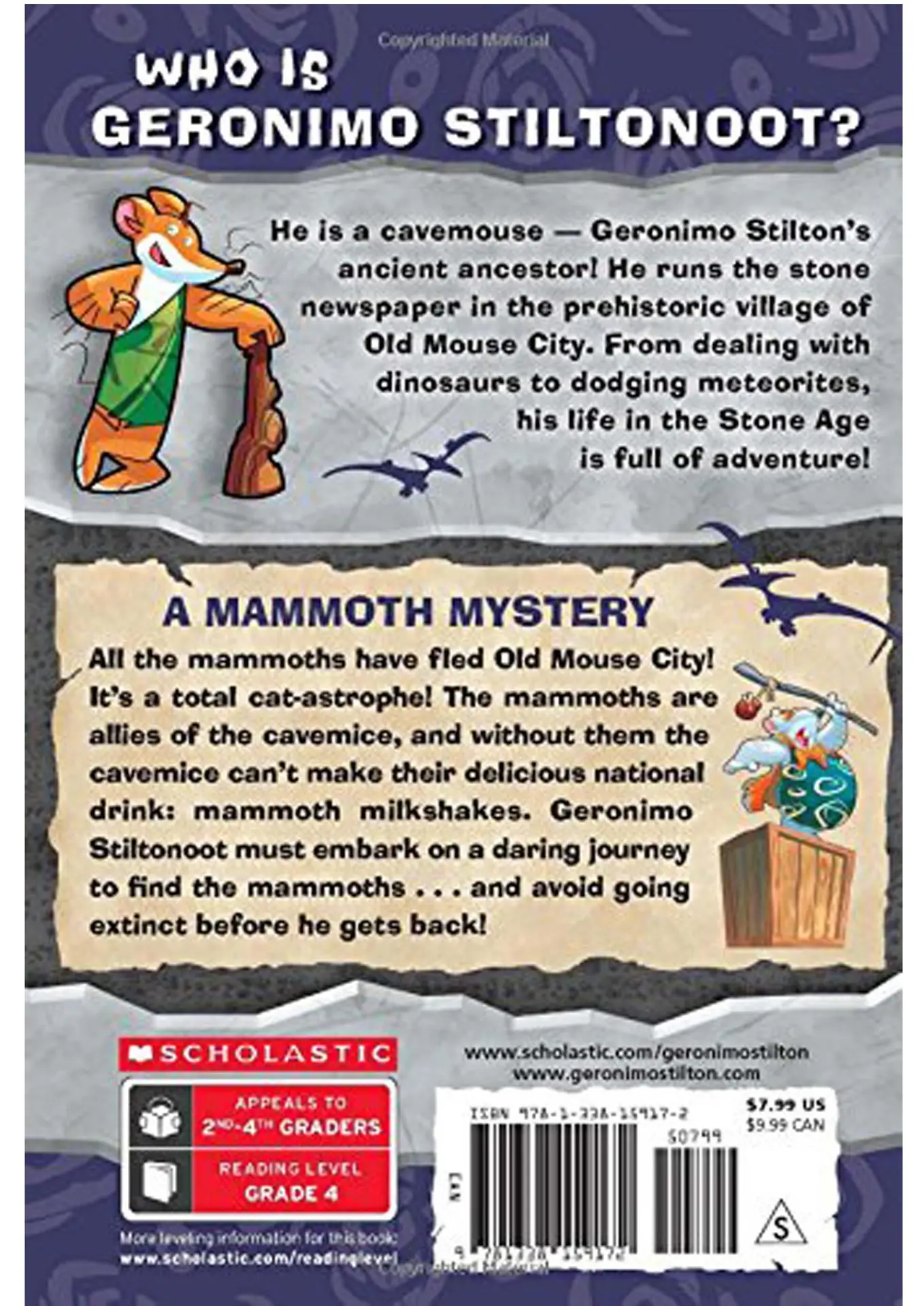 All the mammoths have fled Old Mouse City! Its a total cat-astrophe! Not only because mammoths are valuable allies of the cavemice, but also because without them, the cavemice cant make mammoth milkshakes, their delicious national drink. Geronimo Stiltonoot must embark on a daring journey to find the mammoths…and avoid going extinct before he gets back!
