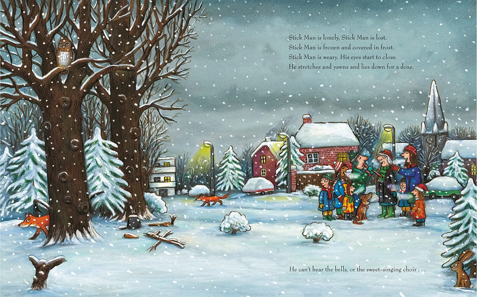 “Stick Man lives in the family tree With his Stick Lady Love and their stick children three.” But its dangerous being a Stick Man. A dog wants to play with him, a swan builds her nest with him. He even ends up on a fire! Will he ever get back to the family tree?