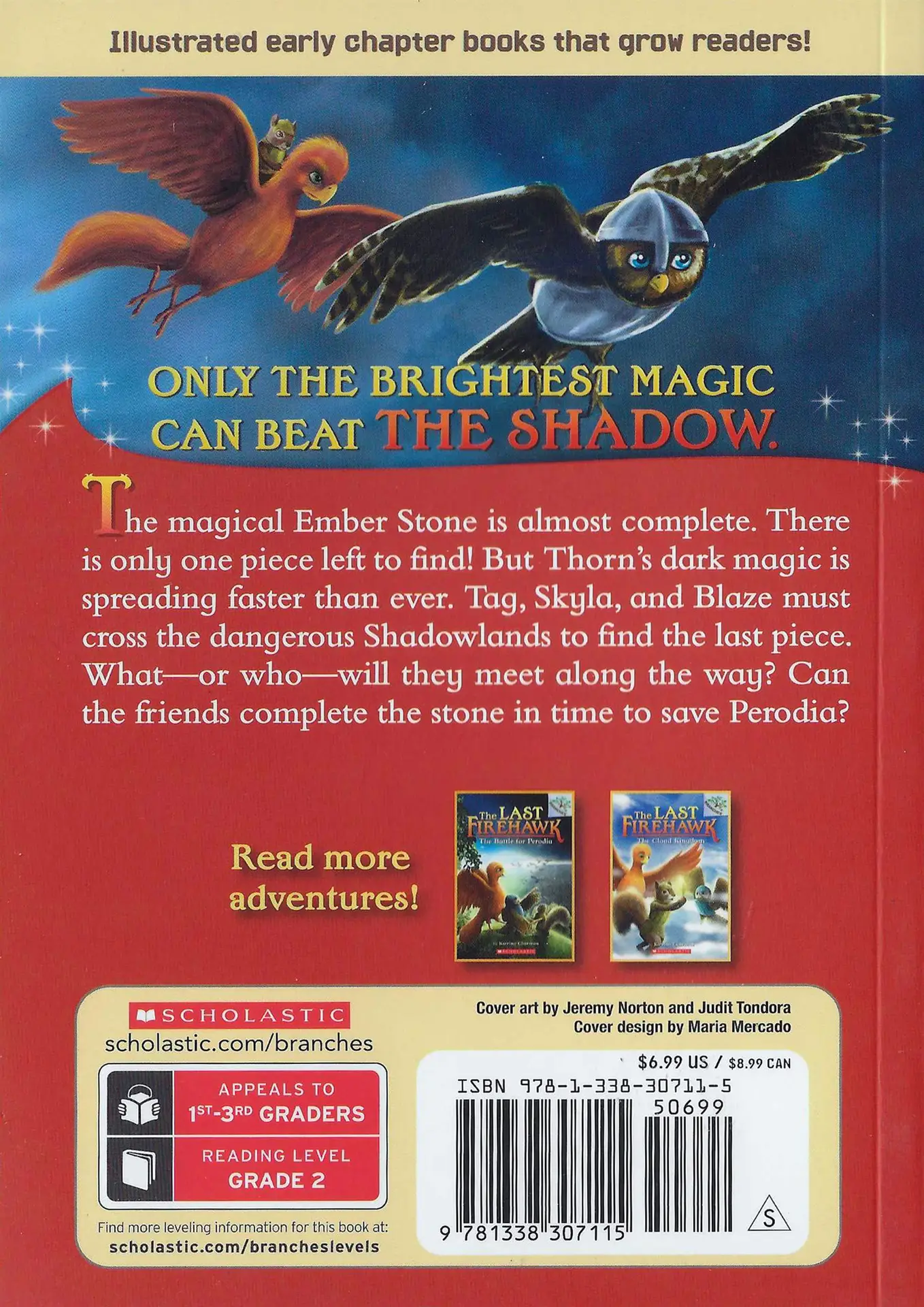 Pick a book. Grow a Reader!This series is part of Scholastic’s early chapter book line, Branches, aimed at newly independent readers. With easy-to-read text, high-interest content, fast-paced plots, and illustrations on every page, these books will boost reading confidence and stamina. Branches books help readers grow!In book 5 of this fantasy series, the magical Ember Stone is almost complete! There is only one piece left to find. But Thorn’s darkness is spreading faster than ever! Tag, Skyla, and Blaze must cross the dangerous Shadowlands to find the last piece. What-or who-will they meet along the way? Can the friends complete the stone in time to save Perodia? Engaging black-and-white illustrations on every page bring the action alive in this fast-paced early chapter book series!
