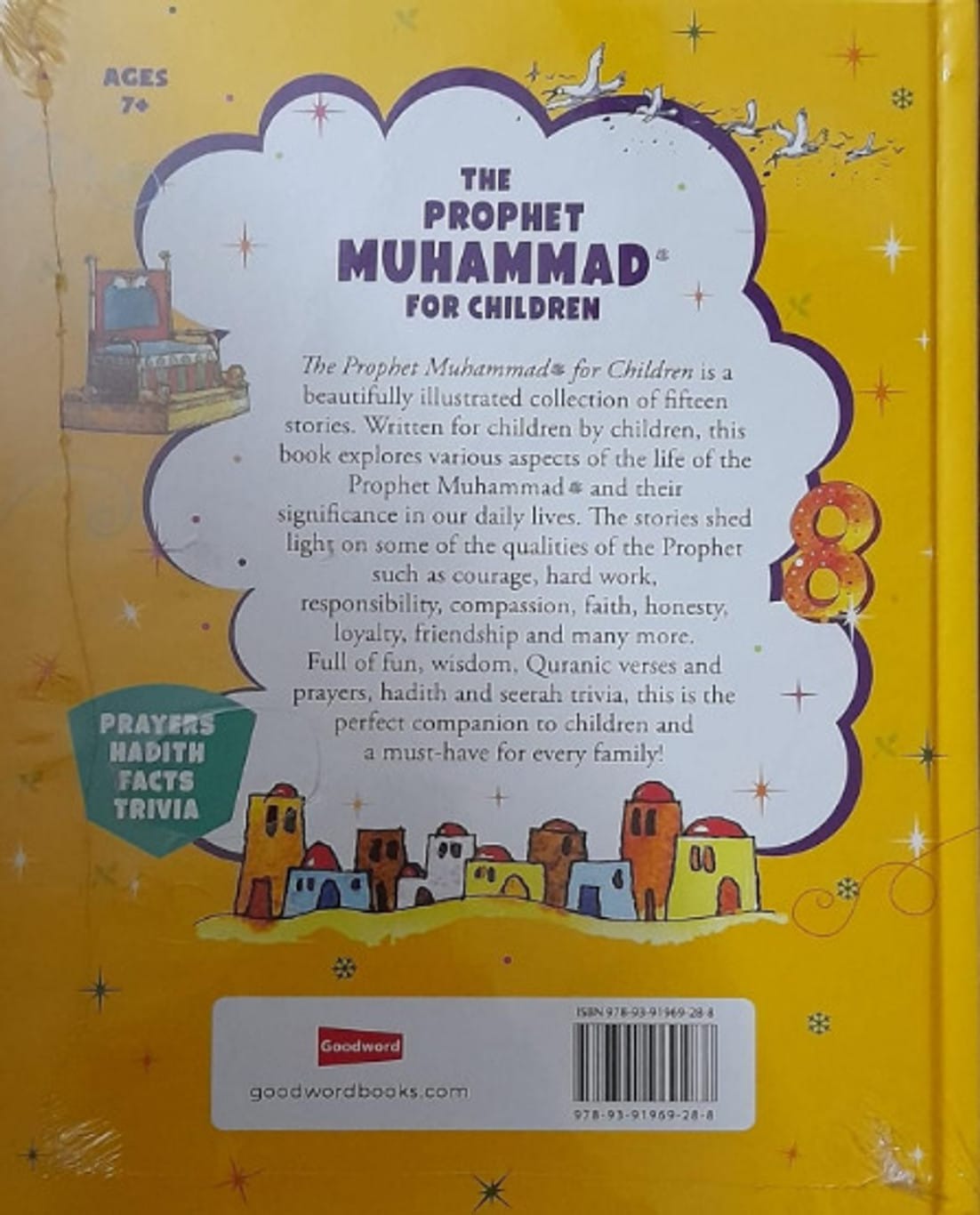 The Prophet Muhammad for Children is a beautifully illustrated collection of fifteen engaging stories, written for children by children. Each story explores a different aspect of the Prophet Muhammad’s (peace be upon him) life, showing how his teachings remain relevant and inspiring in our everyday lives. The stories highlight noble qualities such as courage, honesty, compassion, responsibility, and friendship, encouraging children to embody these values. What makes this book special is its unique voice—young writers share their reflections, making the stories relatable and accessible to their peers. Alongside each story, children will find Quranic verses, Hadith, Seerah trivia, and heartfelt prayers, creating a well-rounded and enriching experience. The language is simple and age-appropriate, while the vibrant illustrations bring the stories to life and capture young imaginations. Whether read at home, in the classroom, or as part of Islamic studies, this book inspires thought, conversation, and personal growth. It offers both fun and wisdom in a format children will enjoy returning to. The Prophet Muhammad for Children is not just a book—it’s a meaningful companion that nurtures love for the Prophet and builds character from a young age. Key Features: • Written by Children: Real stories told from a child’s perspective for deeper relatability. • Character Building: Highlights core virtues from the Prophet’s life and how to apply them today. • Interactive Learning: Includes Quranic verses, Hadith, prayers, and Seerah trivia for extra depth. • Beautifully Illustrated: Colourful visuals that keep readers engaged and inspired. • Perfect for Families: A thoughtful and educational book for every Muslim home and school. Best suited for the age group of 7-15 years of age.