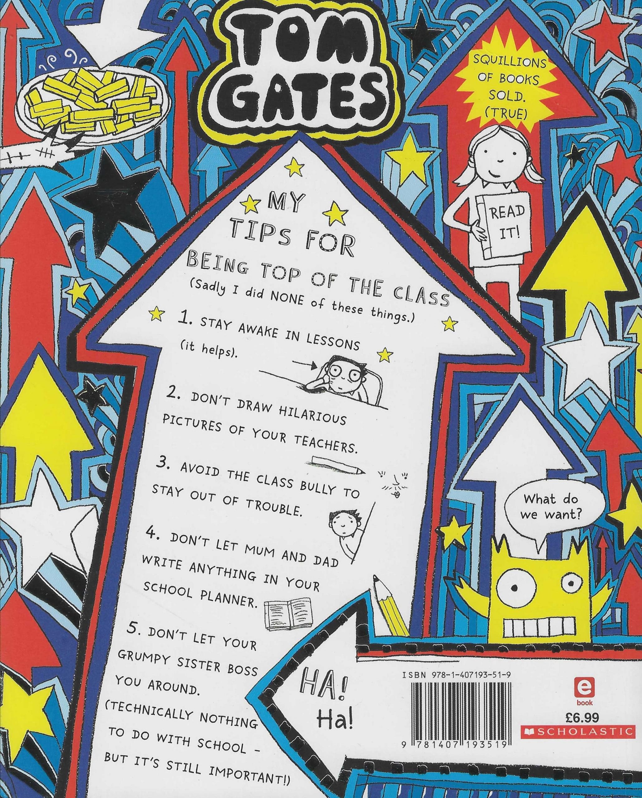 Join Tom as he runs for the school council and TRIES to be top of the class. As per usual things don’t quite go according to plan… If only Tom could follow his own TOP tips for being Top of the Class! Stay awake in lessons (it helps.). Don’t draw HILARIOUS pictures of your teachers. AVOID the class bully to stay out of trouble. Don’t let Mum and Dad write ANYTHING in your school planner. Don’t let your grumpy sister Delia BOSS you around. (Technically not a school issue ? but still important.)