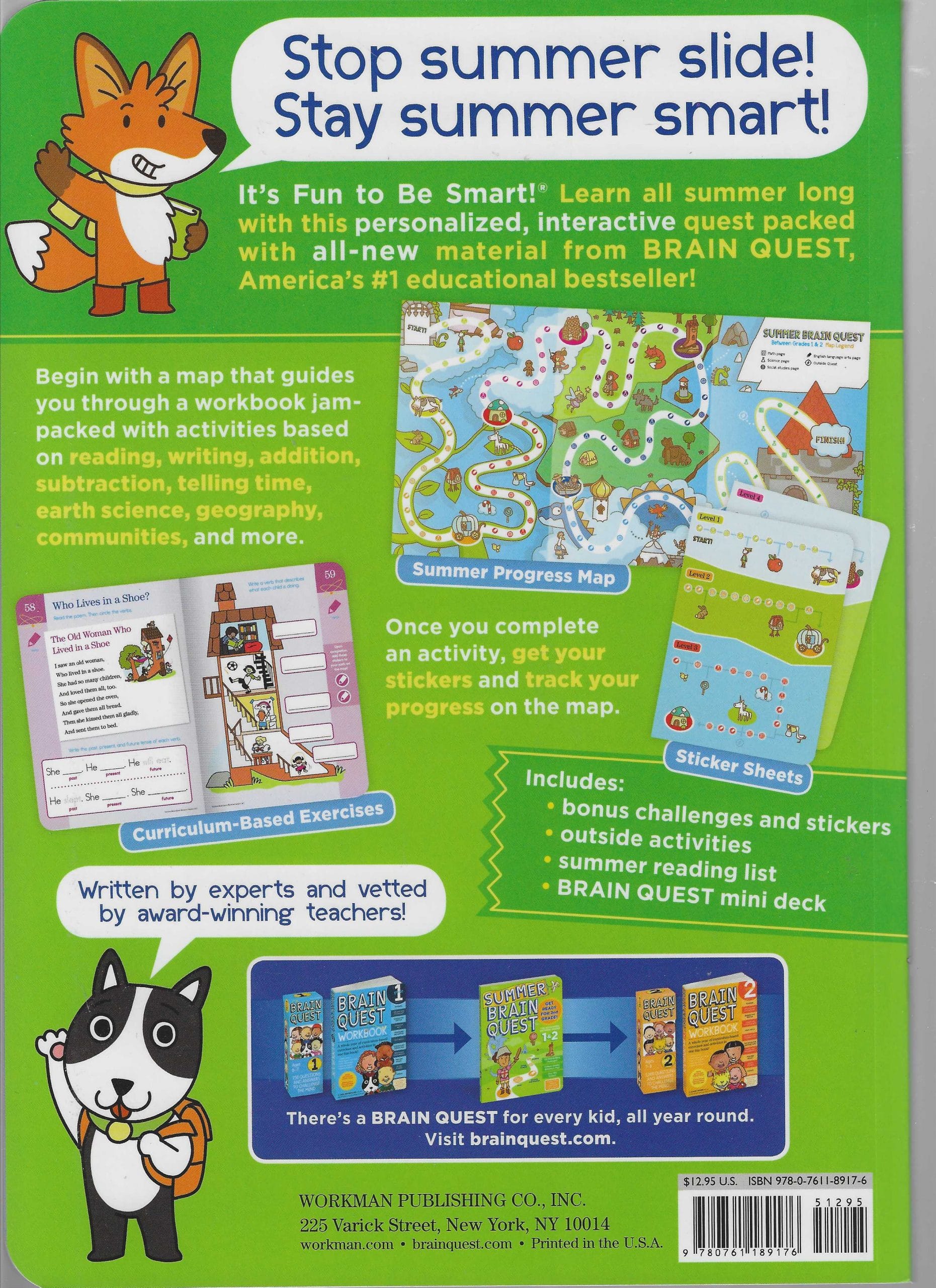 Once you complete an activity, get your stickers and track your progress on the map! Loved by kids, teacher-approved, and parent-trusted, this Summer Brain Quest Workbook also includes bonus challenges and stickers, outside activities, a summer reading list, a Brain Quest mini deck, and more.