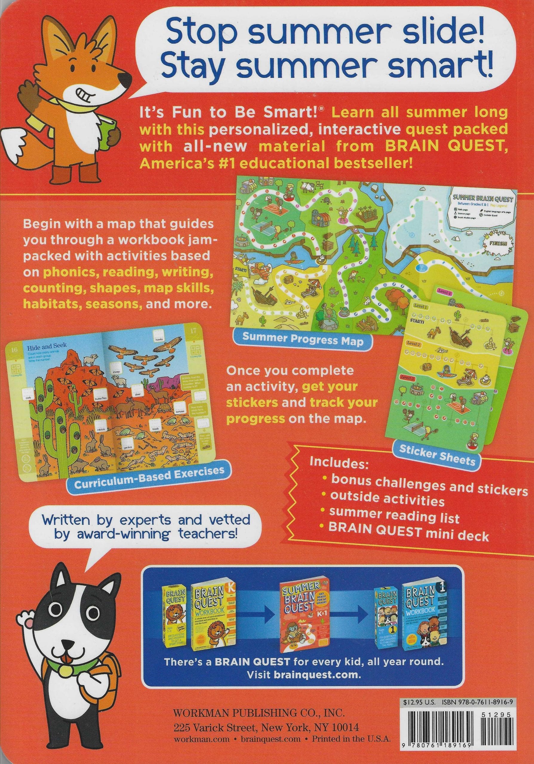 Once you complete an activity, get your stickers and track your progress on the map! Loved by kids, teacher-approved, and parent-trusted, this Summer Brain Quest Workbook also includes bonus challenges and stickers, outside activities, a summer reading list, a Brain Quest mini deck, and more.