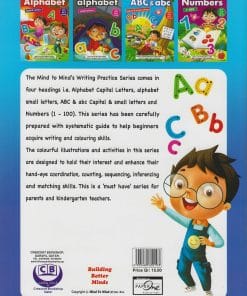 The Mind to mind’s Writing Practice Series comes in four headings i.e Alphabet Capital Letters, alphabet small letters, ABC & abc capital & small letters and Numbers (1-100). this series has been carefully prepared with systematic guide to help beginners acquire writing and colouring skills.